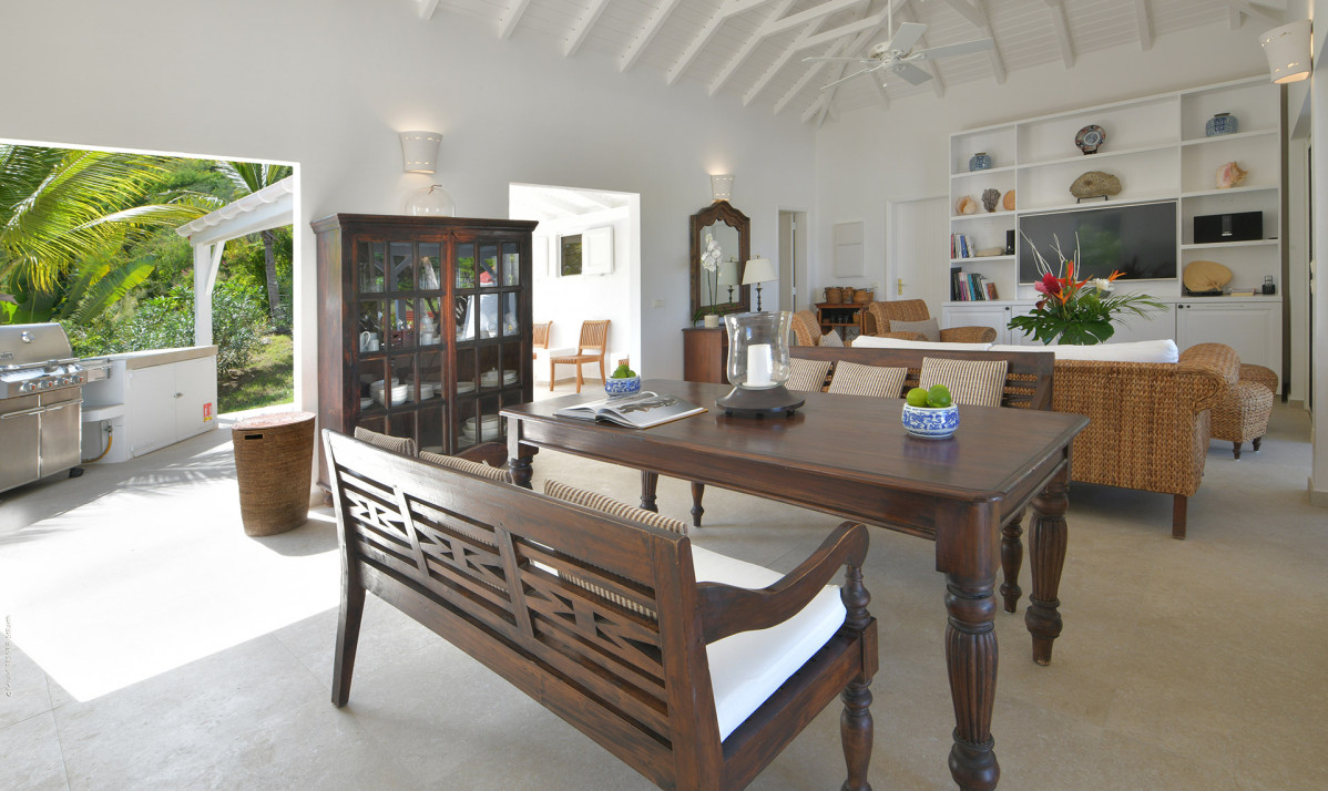 Traditional West Indian architecture dishes up an airy main pavilion, housing an interior living and dining room, a well-equipped kitchen and two of the villa’s four en suite bedrooms. A deliciously relaxed and homey feel pervades the casual elegance of the British Colonial décor featured throughout.