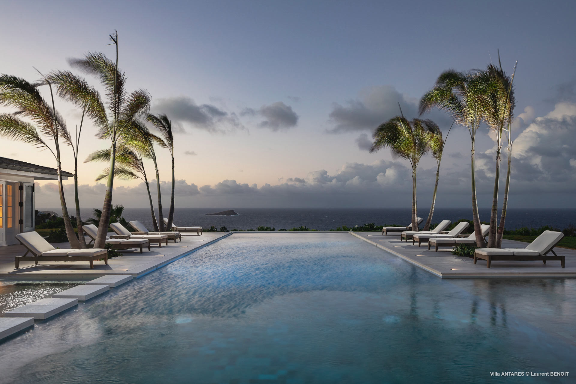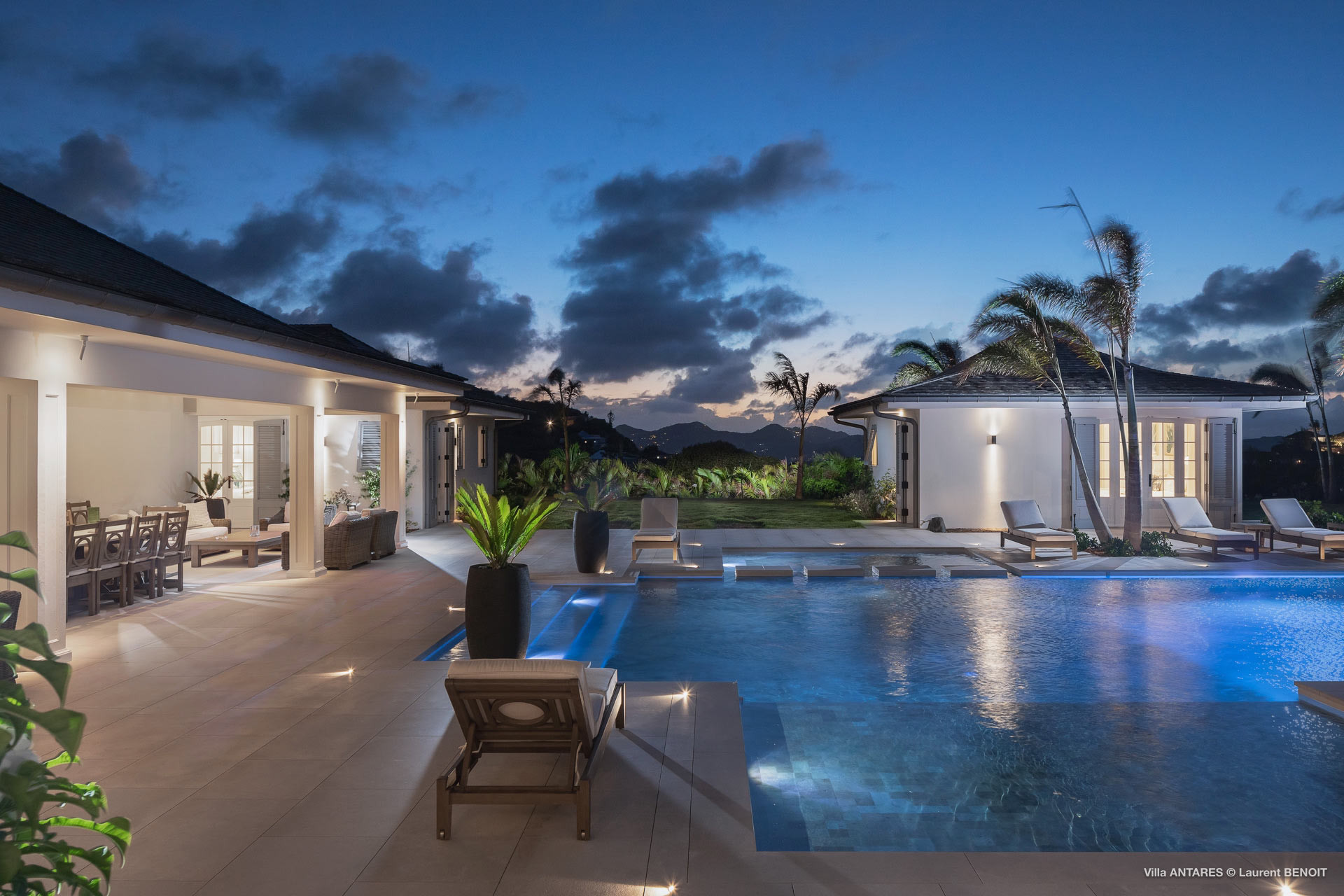Villa Antares St Barts is a 5 bedroom rental property, an exquisite colonial retreat nestled within the private secluded gated domain of Mont Jean. This exclusive vacation home, situated just a short drive from the beach is like a dream that becomes reality as soon as you pass through the gates and step into the lush garden, enveloped by swaying pa...