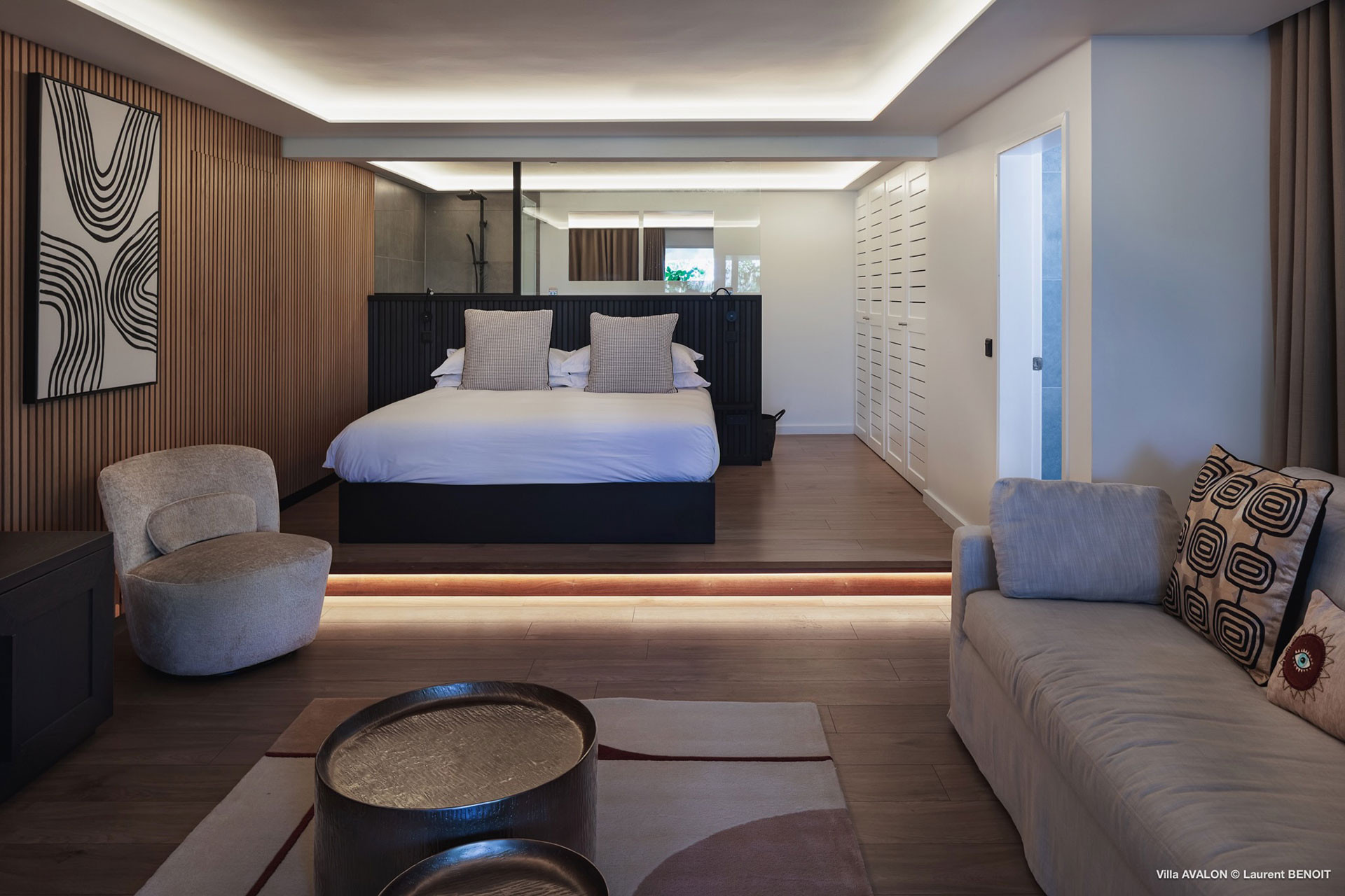 The bedrooms of Villa Avalon are designed to be sanctuaries of peace and privacy. Each bedroom features comfortable beds to ensure a restful night's sleep for every guest, with the master boasting a king-size bed that overlooks the sea. The bedrooms are serviced daily, with a dedicated maid ensuring that each room is a fresh, clean retreat upon your return. The features of each bedroom, including en-suite bathrooms with great amenities and a policy of utmost discretion, provide an exclusive experience for discerning guests. In November, as the island breeze cools the evenings, Villa Avalon's bedrooms become the perfect seaside escape, complete with the sounds of the ocean to lull you to sleep.