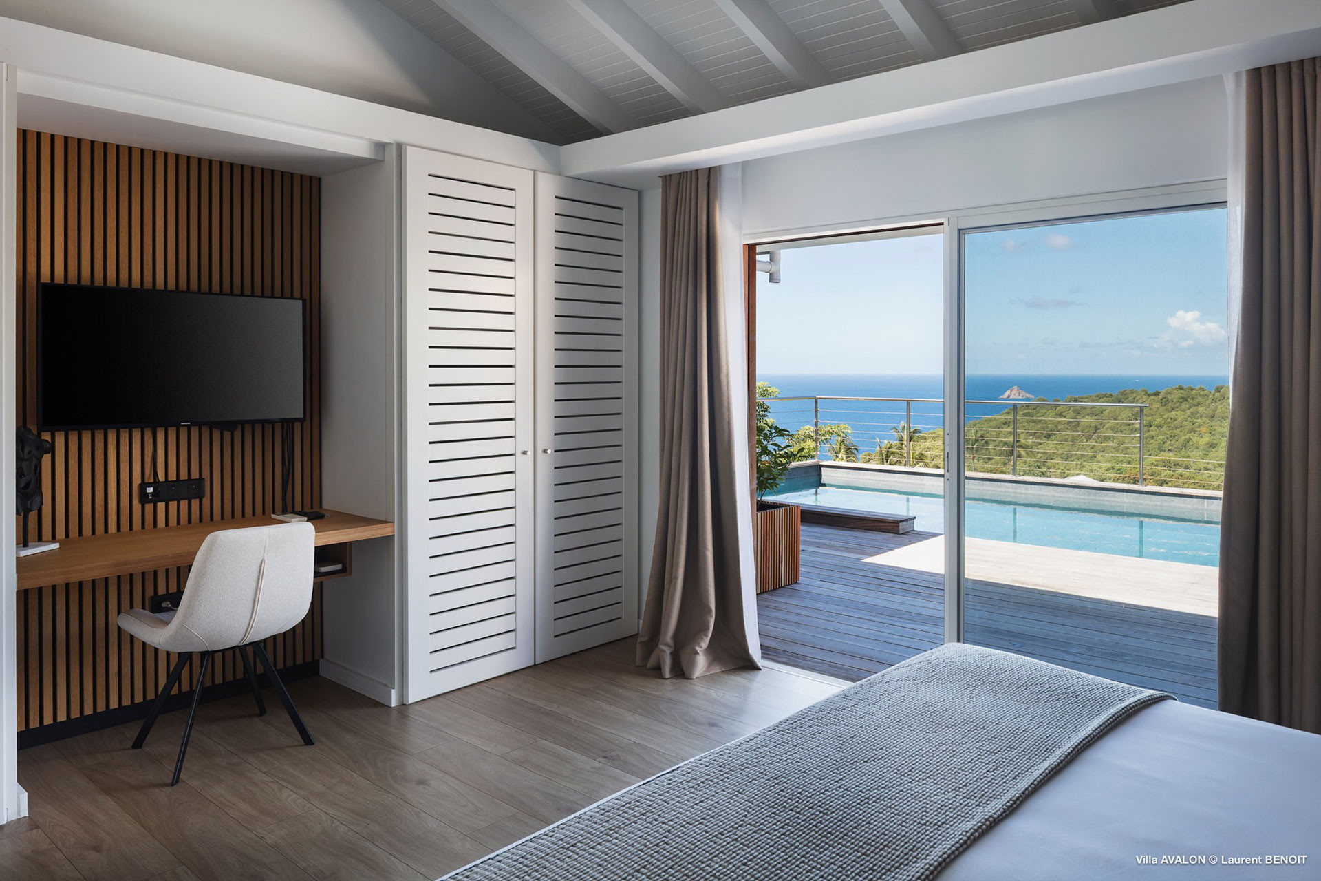 Step into Villa Avalon's interior to experience a symphony of design and function. The villa boasts a spacious, open-concept living area that combines modern features with the charm of St. Barts. The air-conditioned space is thoughtfully designed for comfort, with satellite-equipped entertainment and an ocean view that enhances every moment. A concierge service is available day and night to cater to your every need, ensuring your stay is nothing short of perfect. With a well-located, fully equipped kitchen and a maid service maintaining the impeccable cleanliness, the Villa offers a seamless living experience.
