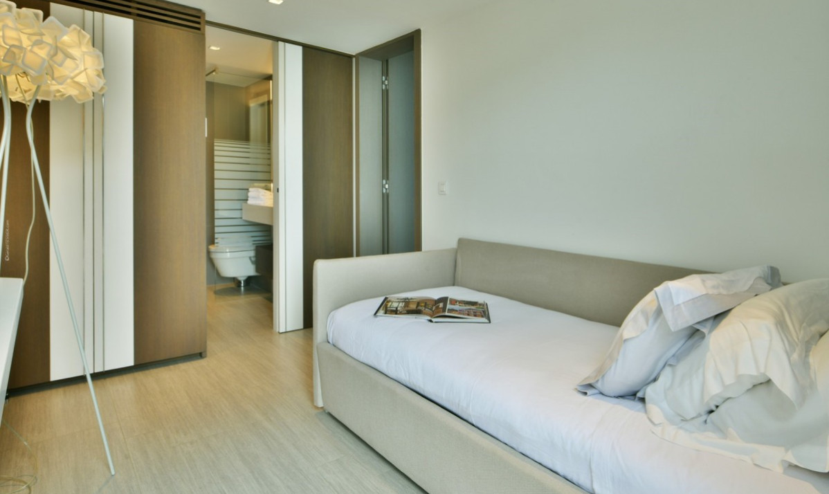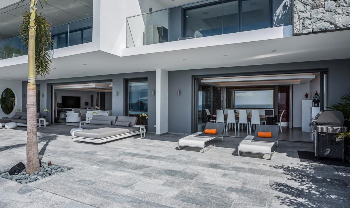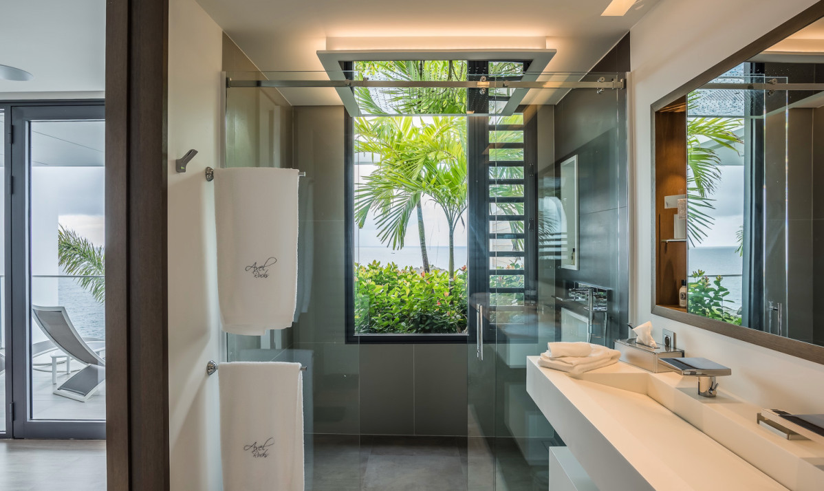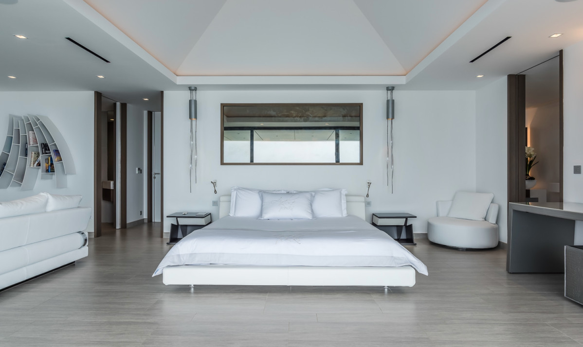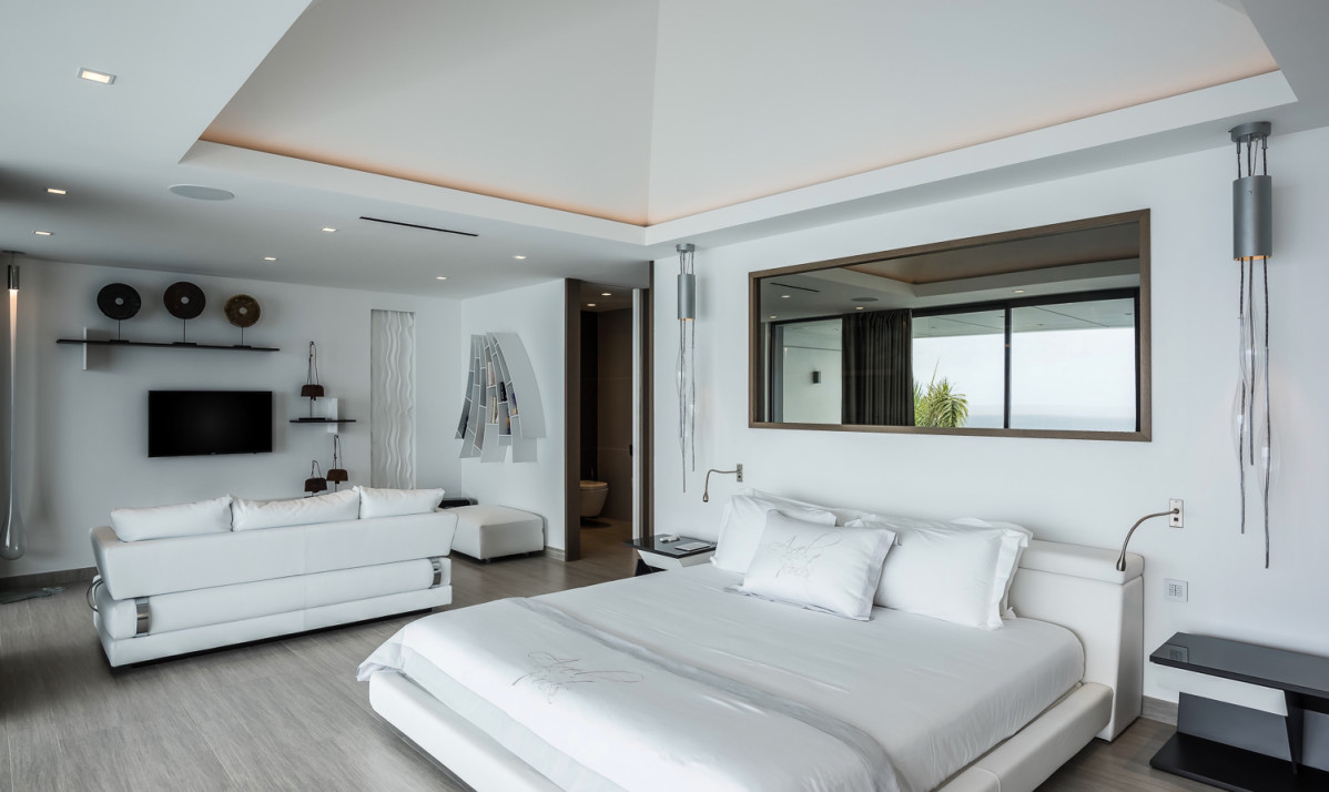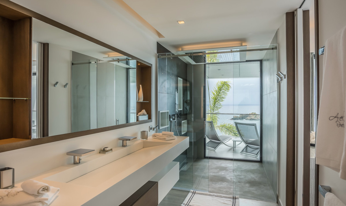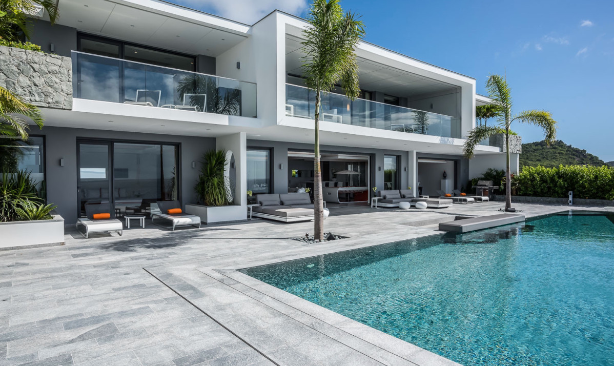 Sprawled across two floors, the grandeur of Villa Axel Rocks St Barts is unmatched. Upstairs three elegant suites offer deliciously sleek en suite baths, with private terraces overlooking the majestic vista. The fourth suite is found on the main floor, opening up onto the pool and terrace. The fifth bedroom is smaller with a single bed designed for a nanny, cook or personal security.