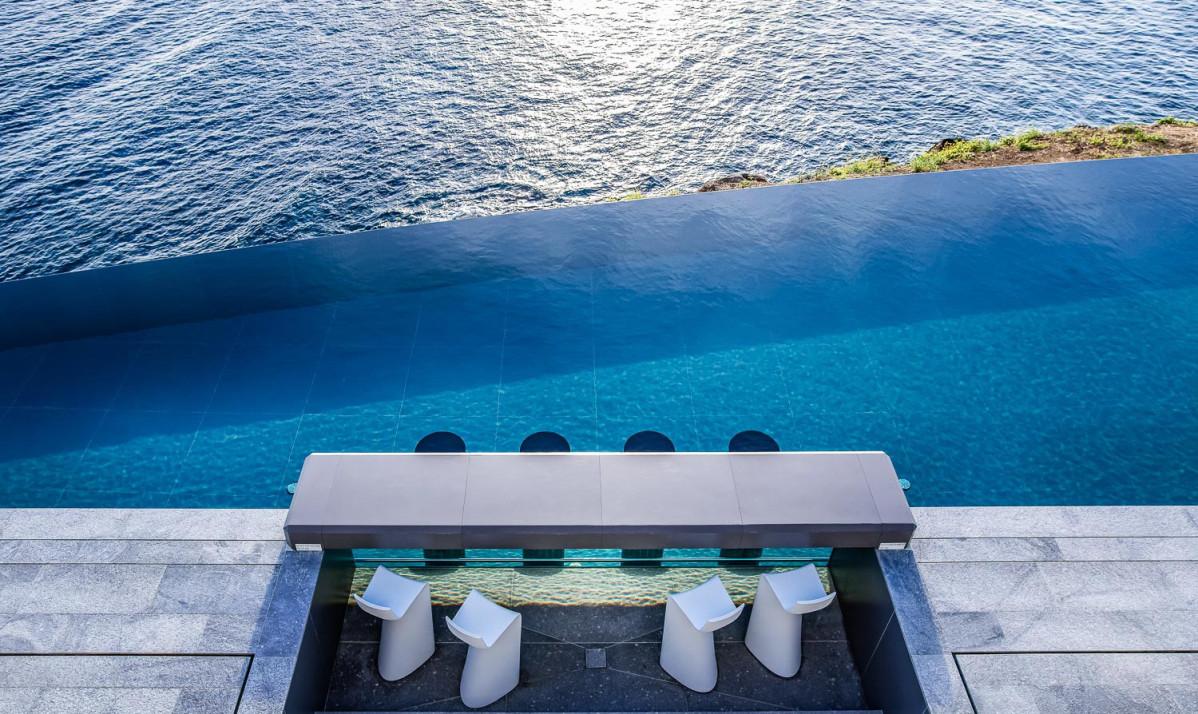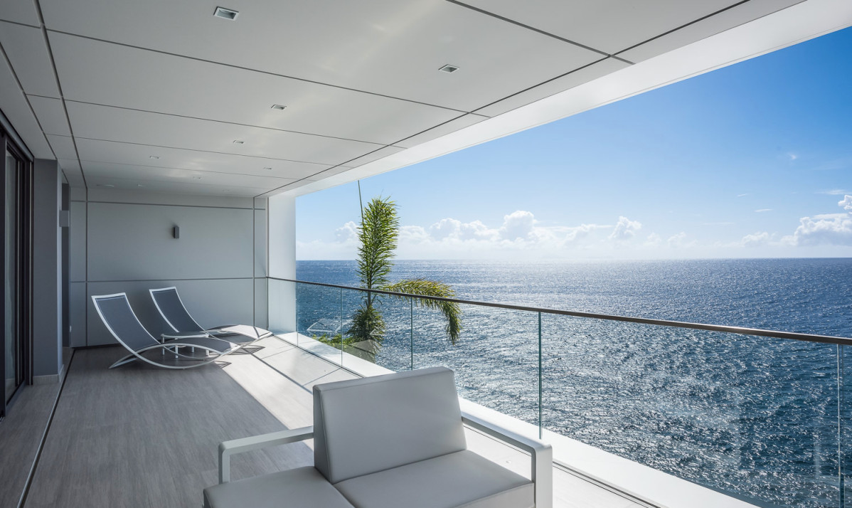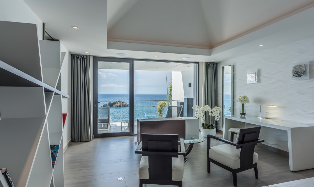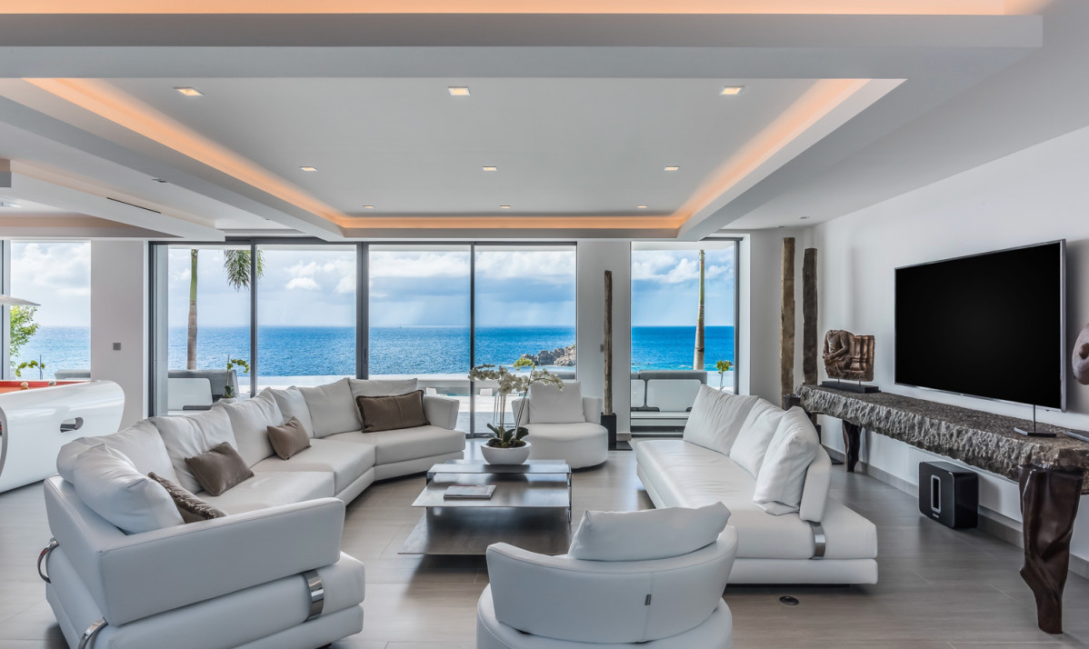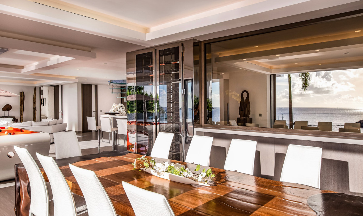Most striking at Villa Axel Rocks St Barts perhaps is the flawless westward expanse of deep blue sea, flecked with savage islets and the sensual silhouette of the neighboring isle of Saba. Elegant outdoor lounge spaces surround a massive infinity pool with swim-up bar, making the absolute most of the stunning panorama.