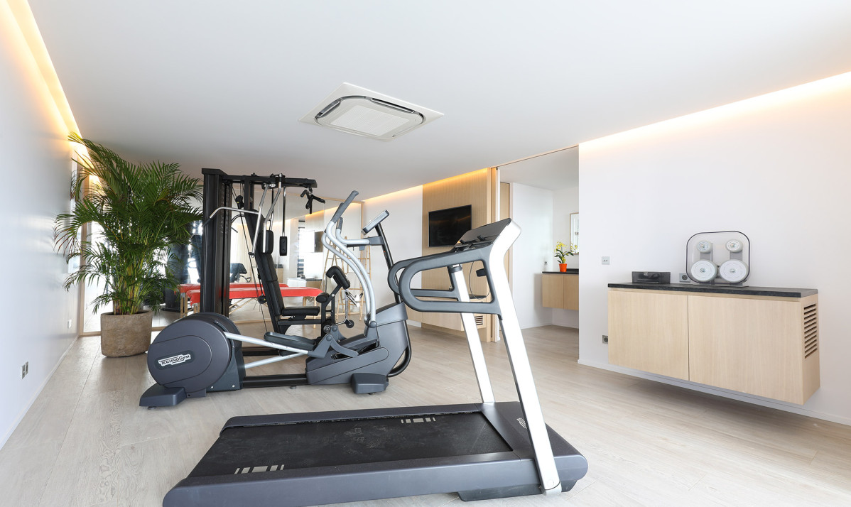 Light woods, whites and creams present a very bright yet soothing and homely space that is luxury living without the pompousness; a theme that is continued through to the three bedrooms. All three are similarly sized and styled. Sun drenched and with their own private patios, the wonderful views can be admired from the beds, or from the fun hanging chairs by the windows. Each of the ensuites has a large, walk-in shower, looking out to the views too. As an extra bonus, this vacation home has a gym on its lower level that is fully self-contained with its own ensuite bathroom and patio.
