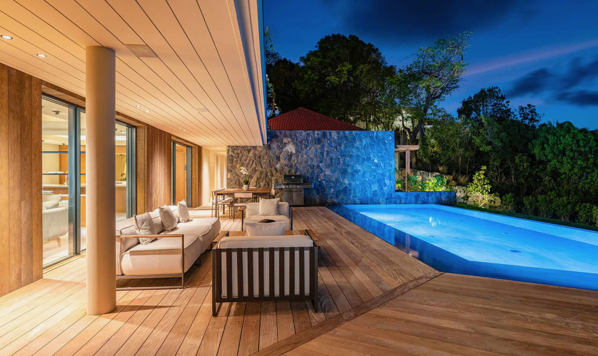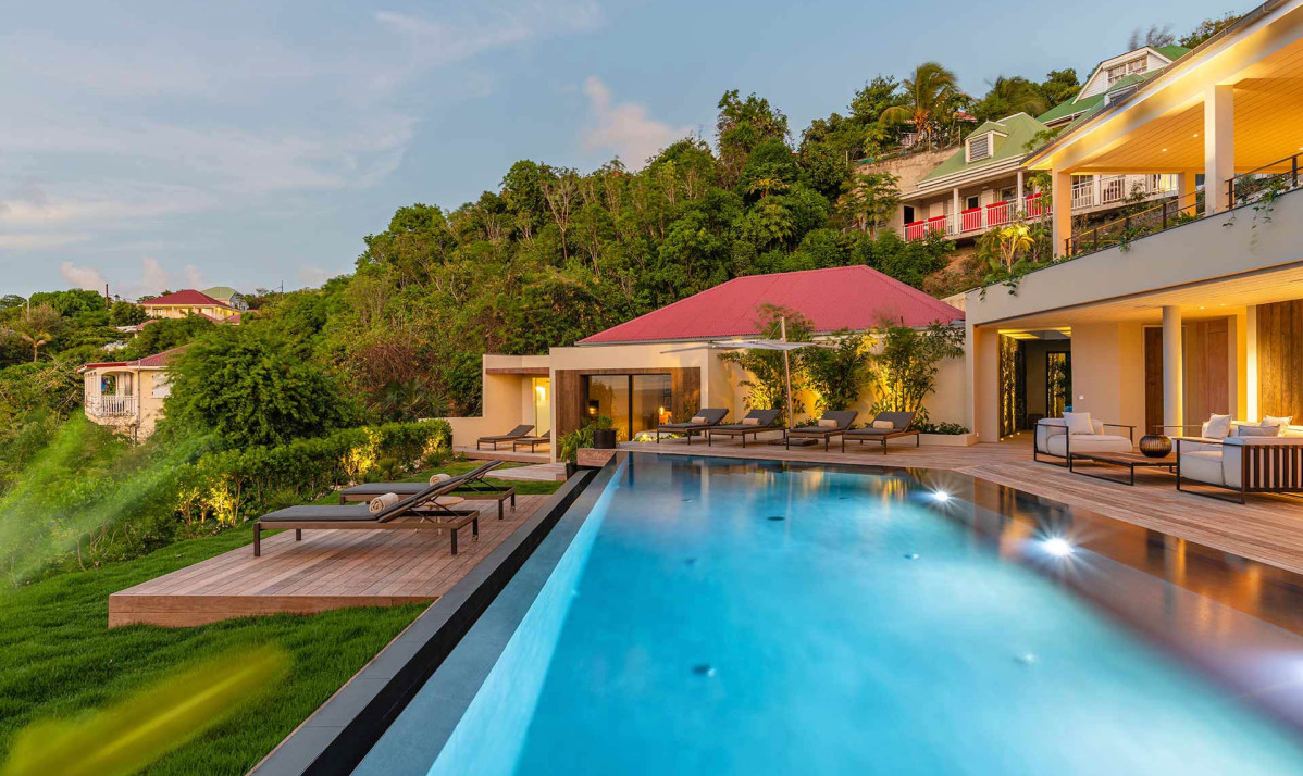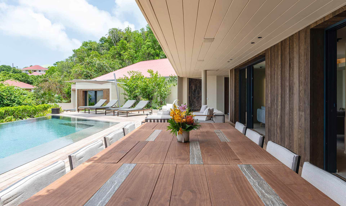 Situated in the enchanting Colombier neighborhood, 5 bedroom Villa Eva St Barts boasts an idyllic location just above Flamands and a short drive to the beach, providing guests with a truly captivating panorama of the bay and the nearby islands. This newly built villa promises a perfect retreat, where you can bask in the breathtaking views and immer...