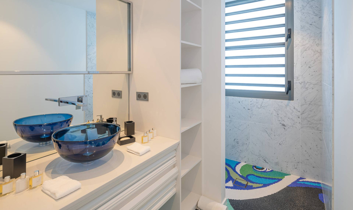 The property features four beautifully designed bedrooms, each offering a unique experience of comfort and elegance. Two of these bedrooms are conveniently located on the main level, sharing the same floor as the living room and pool, ensuring easy access and a seamless flow between indoor and outdoor spaces. The other two bedrooms are situated above, providing a heightened sense of privacy and tranquility. All bedrooms boast striking views of the ocean, allowing guests to wake up to the serene beauty of the sea. The thoughtful placement of each bedroom ensures that every guest can enjoy the breathtaking panorama and making each stay a memorable one.