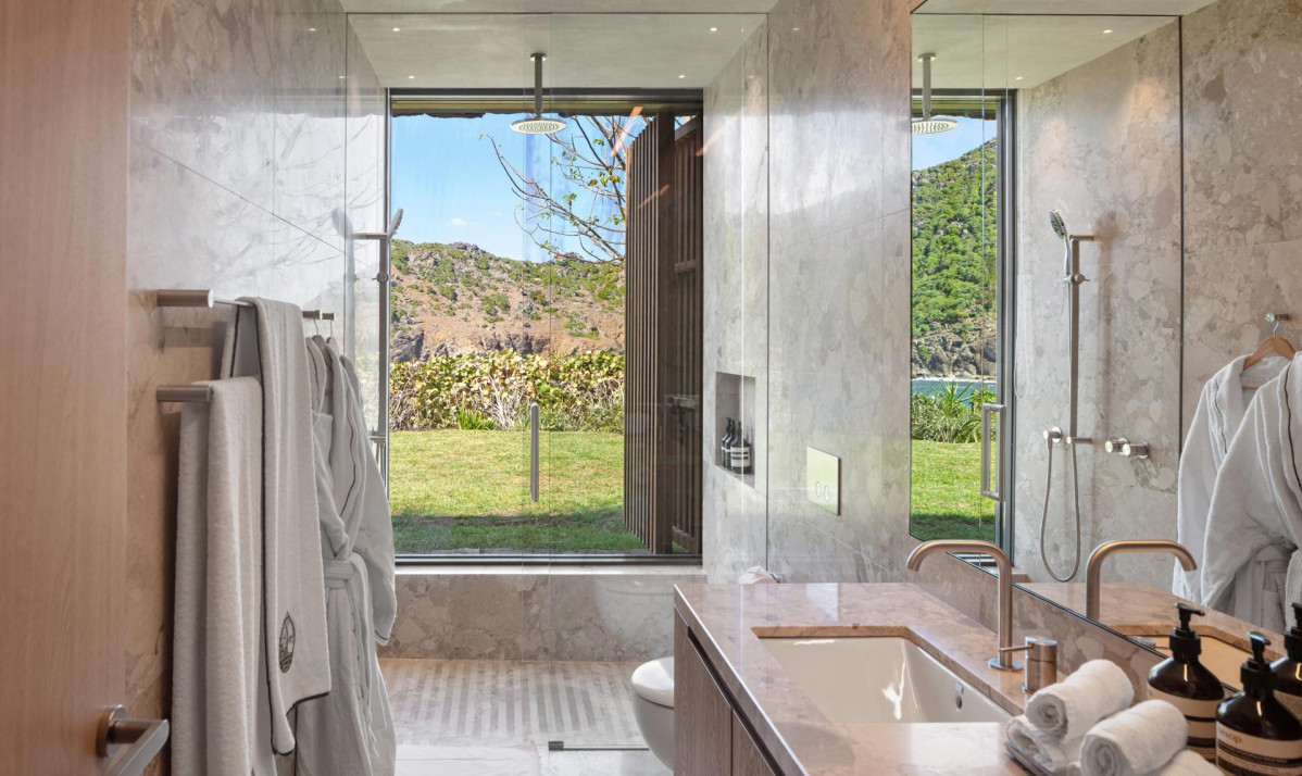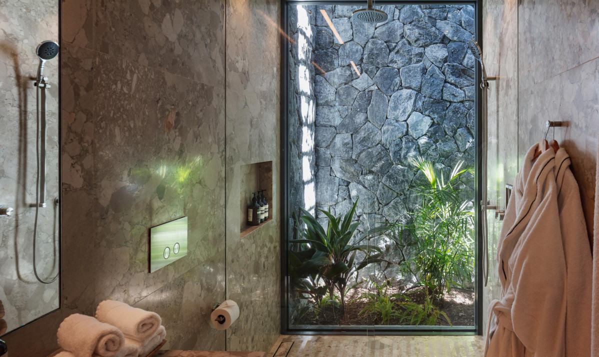 The property offers 5 private bedrooms located on lower level, which 4 are designed to embrace magnificent ocean views and the 5th is facing the green space. Surrounded by lush greenery and tropical gardens, the rooms provide a serene and immersive connection with nature. Large windows and open modern spaces enhance natural light, creating a seamless indoor-outdoor passage. The thoughtful layout ensures privacy while maintaining easy access to the luxurious amenities. With refined decor and high-end finishes, every suite invites relaxation in a tranquil, tropical retreat.
