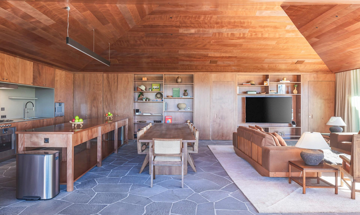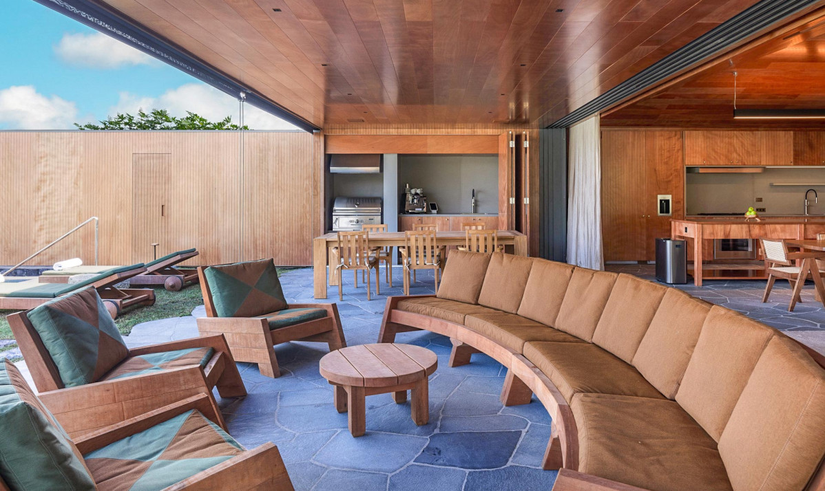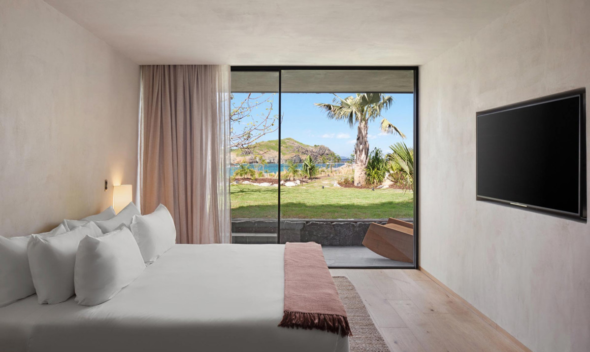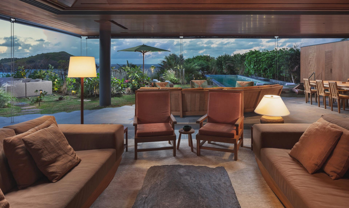 The home features an exceptional interior that seamlessly blends with its natural surroundings. The main great space, crowned by a four-sided roof, offers an open and airy ambiance with warm wood and natural stone finishes. A hidden entrance leads to a unique atrium-like garage, which doubles as an exclusive event space, accommodating up to 150 guests for private gatherings. The home's design prioritizes fluidity between indoor and outdoor spaces, creating a refined yet inviting atmosphere. Its one-of-a-kind architecture sets it apart as a true masterpiece among private villas in St Barts.