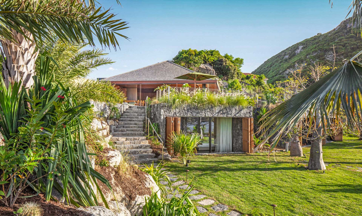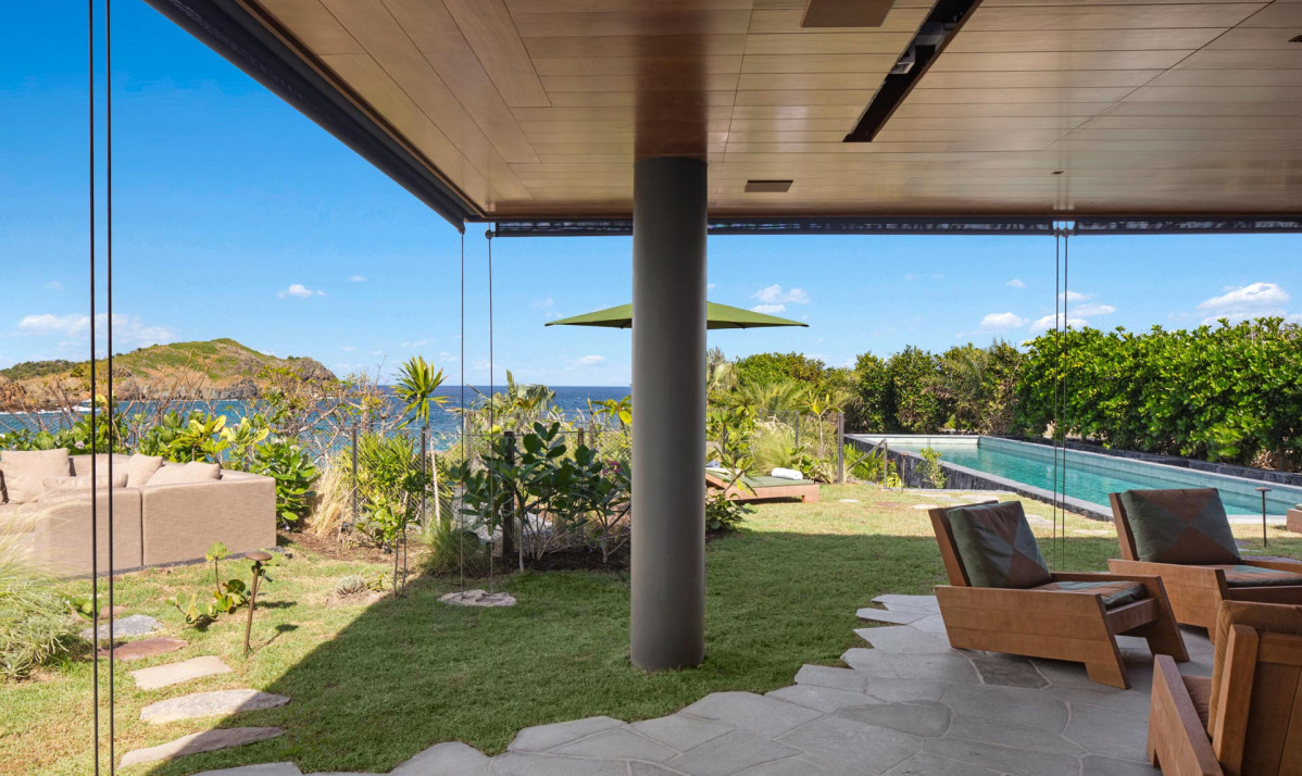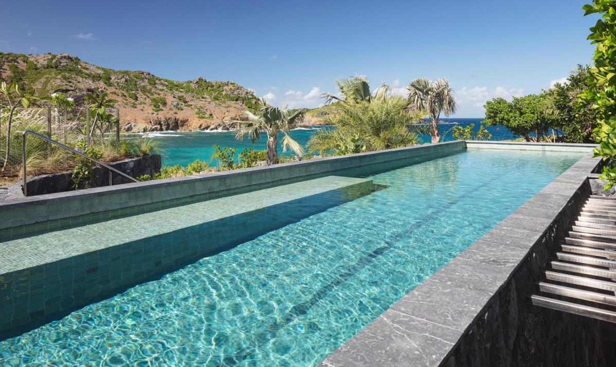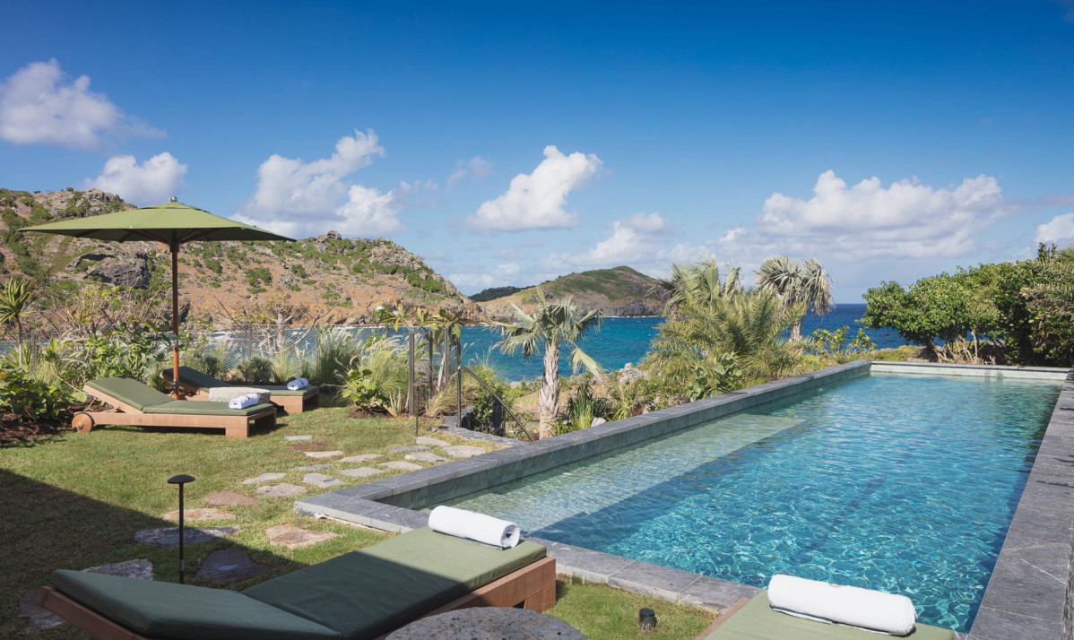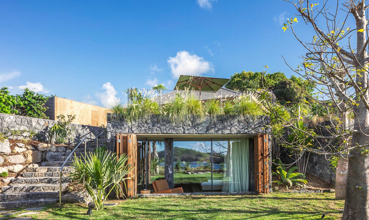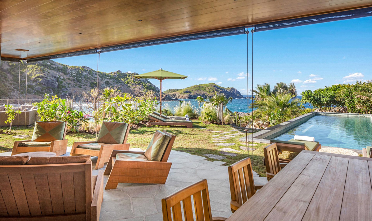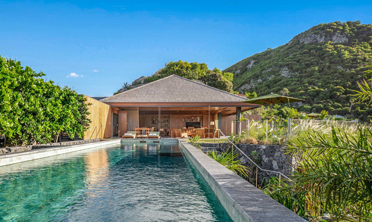 Approximately 70% of the villa's structure is built below ground, creating a unique cave-like atmosphere, while the main living space, with its impressive four-sided roof, sits atop the property. Surrounded by lush landscaping and natural terrain, this exceptional house provides a serene and luxurious island escape in the heart of Saint Barth. The home features a heated swimming pool, surrounded by a spacious wooden deck equipped with comfortable sun loungers, perfect for relaxation. The expansive garden showcases lush landscaping, enhancing the serene atmosphere. Enjoy the private access to Petite Anse beach, providing an exclusive coastal retreat. The home's design harmoniously integrates with the natural surroundings, creating a seamless blend of indoors and outdoors spaces, setting it apart as one of the most distinctive villas in St Barts.