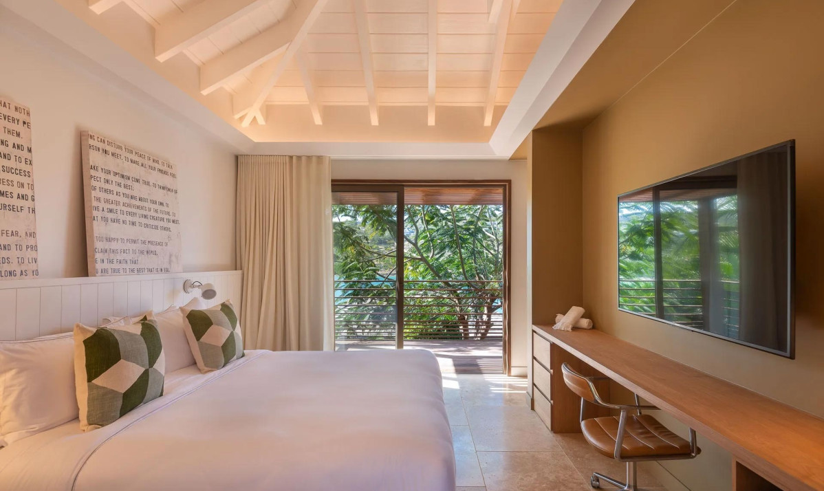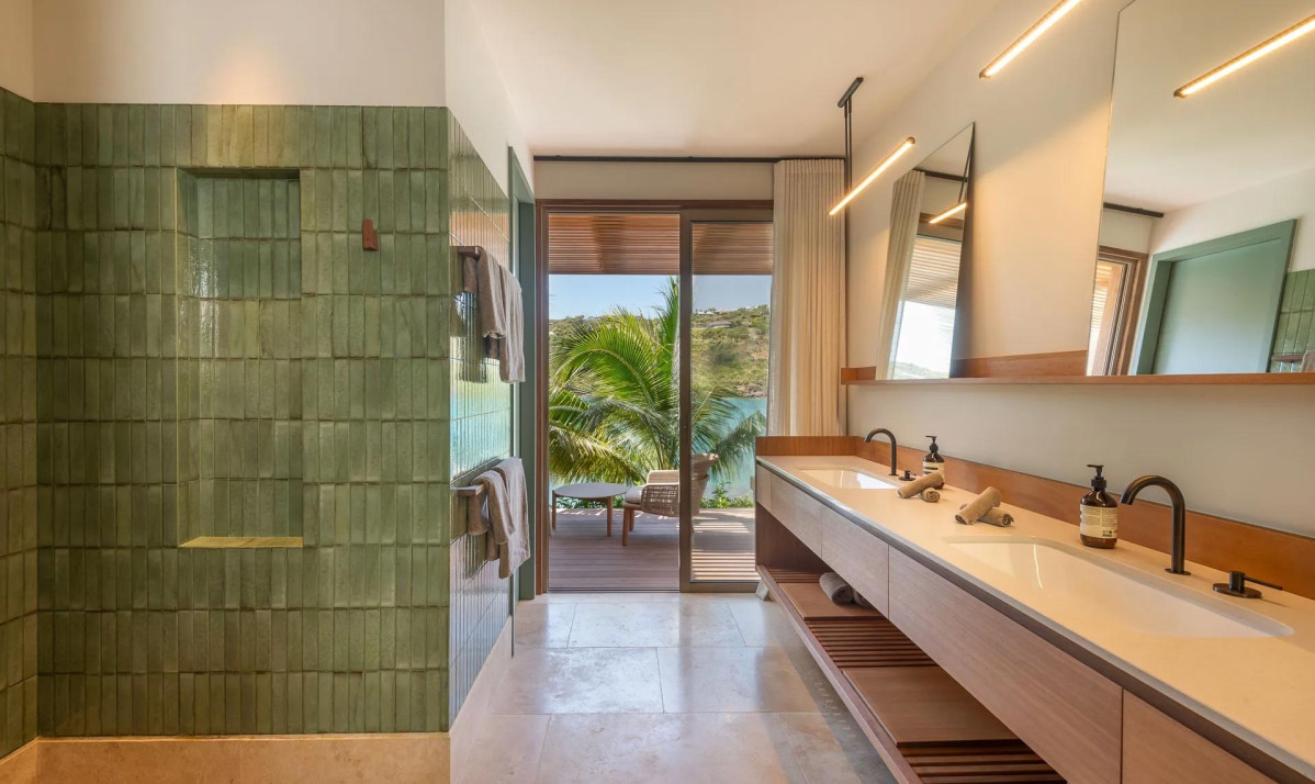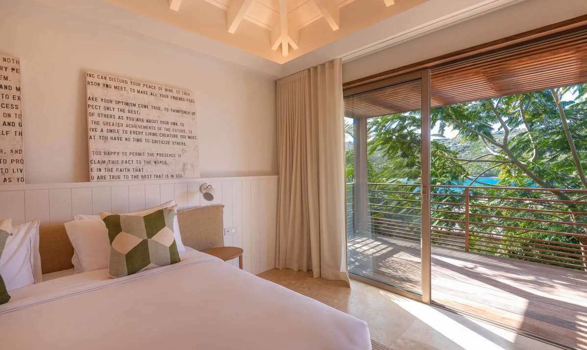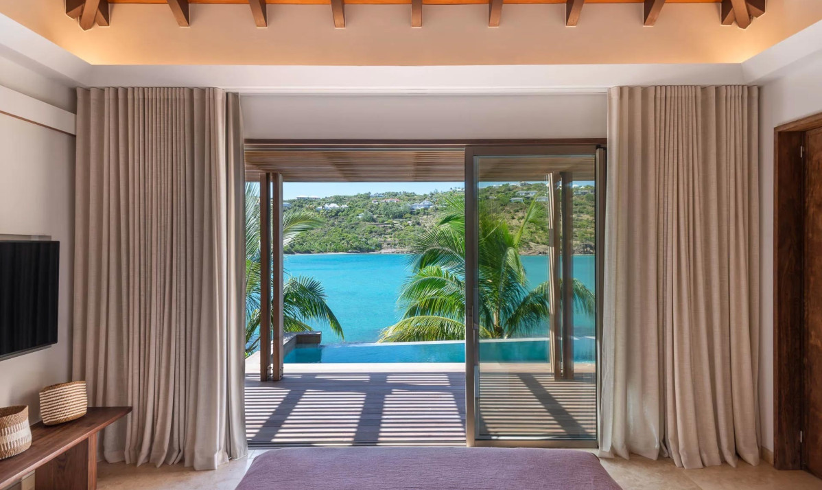 This private property has five beautifully appointed, air-conditioned bedrooms, each with its own private en-suite bathroom. The master suite, located on the main level, opens directly onto the pool terrace and features a lush outdoor shower and double vanities. The other four bedrooms are housed in separate bungalows, each with its own balcony offering ocean or garden views. Every room includes blackout curtains, smart TVs, safes, and tasteful décor blending soft neutrals with Caribbean accents to create a serene, private retreat for every guest.