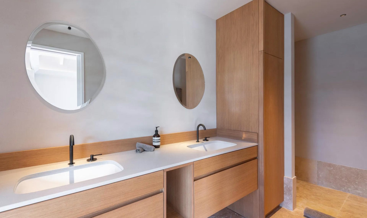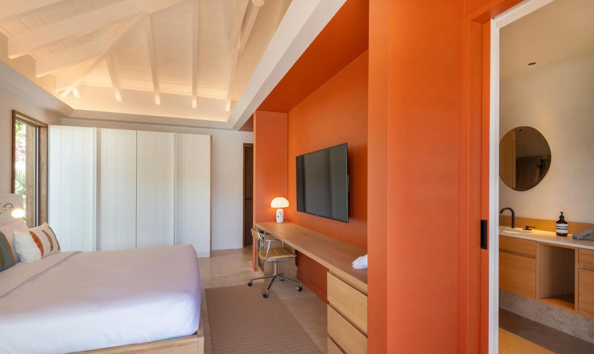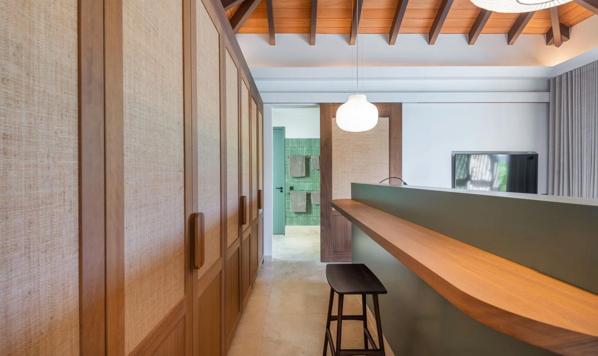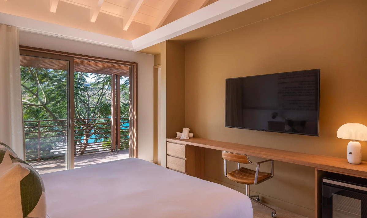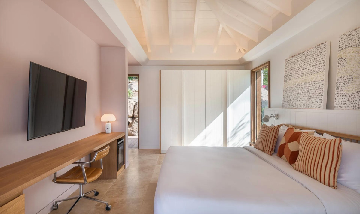 This private property has five beautifully appointed, air-conditioned bedrooms, each with its own private en-suite bathroom. The master suite, located on the main level, opens directly onto the pool terrace and features a lush outdoor shower and double vanities. The other four bedrooms are housed in separate bungalows, each with its own balcony offering ocean or garden views. Every room includes blackout curtains, smart TVs, safes, and tasteful décor blending soft neutrals with Caribbean accents to create a serene, private retreat for every guest.