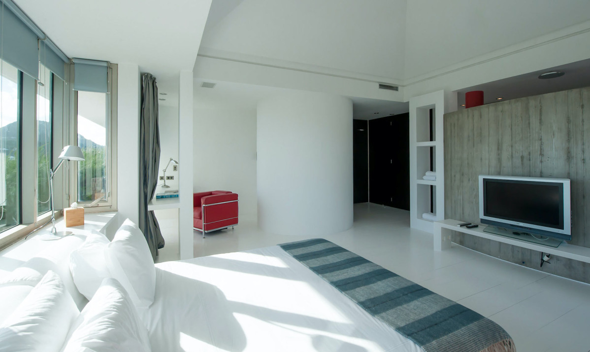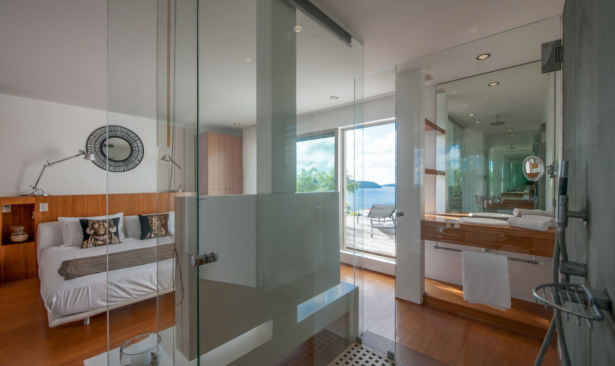 The bedrooms of the property are designed to provide comfort and tranquility with breathtaking views. Two bedrooms are located on the main floor, each featuring a king-sized bed, en-suite bathroom, and direct access to the terrace, blending indoor elegance with outdoor serenity. Both master bedrooms are accessible from the parking are step free. The third bedroom, situated on the lower level, garden level, offers added privacy and its own en-suite. Neutral tones, premium linens, and large windows create a soothing atmosphere, while the minimalist design ensures a clutter-free retreat. Perfect for restful nights and serene mornings.