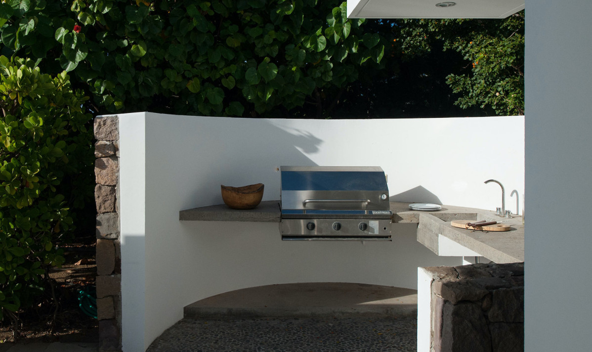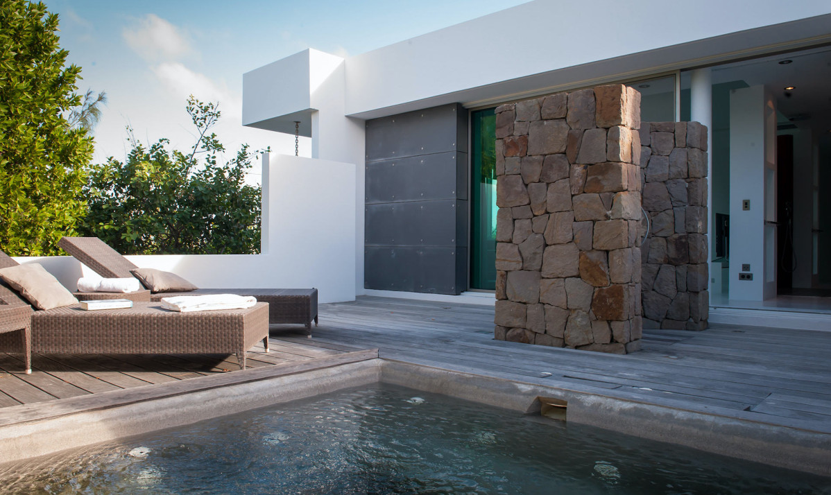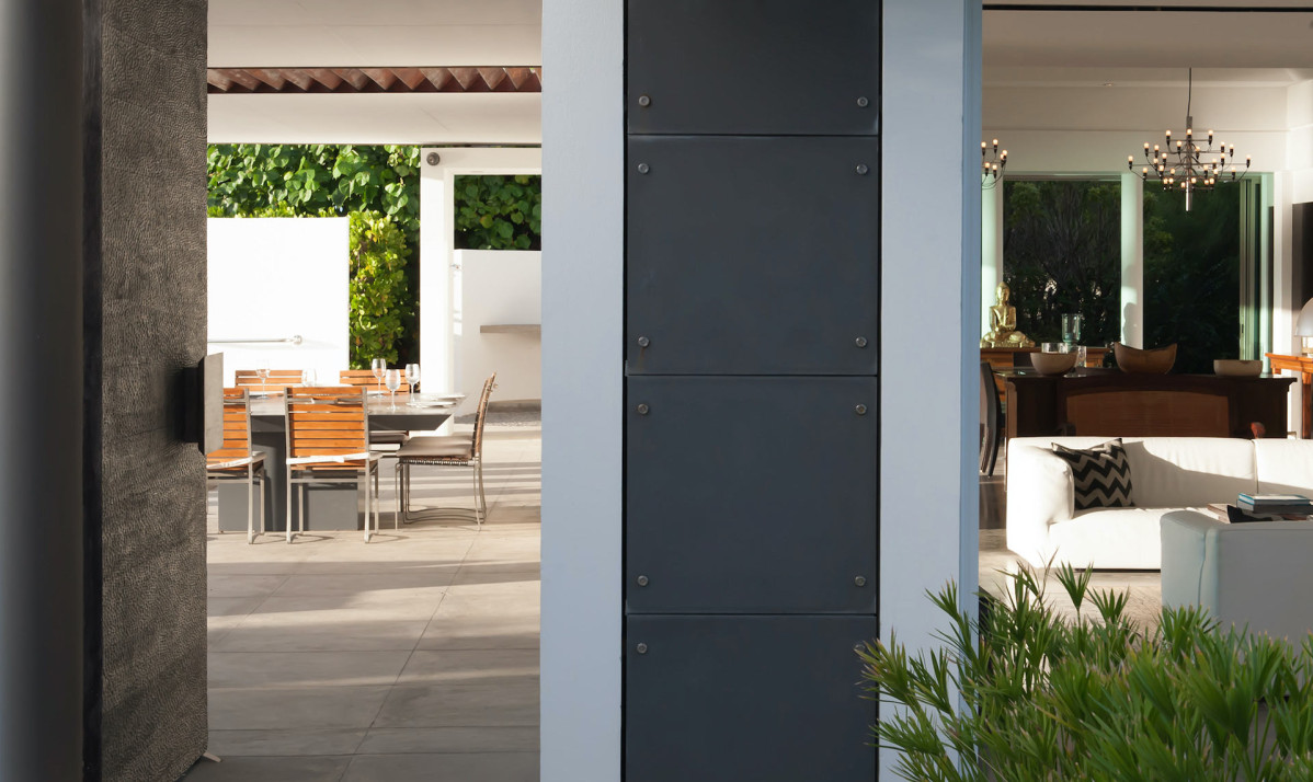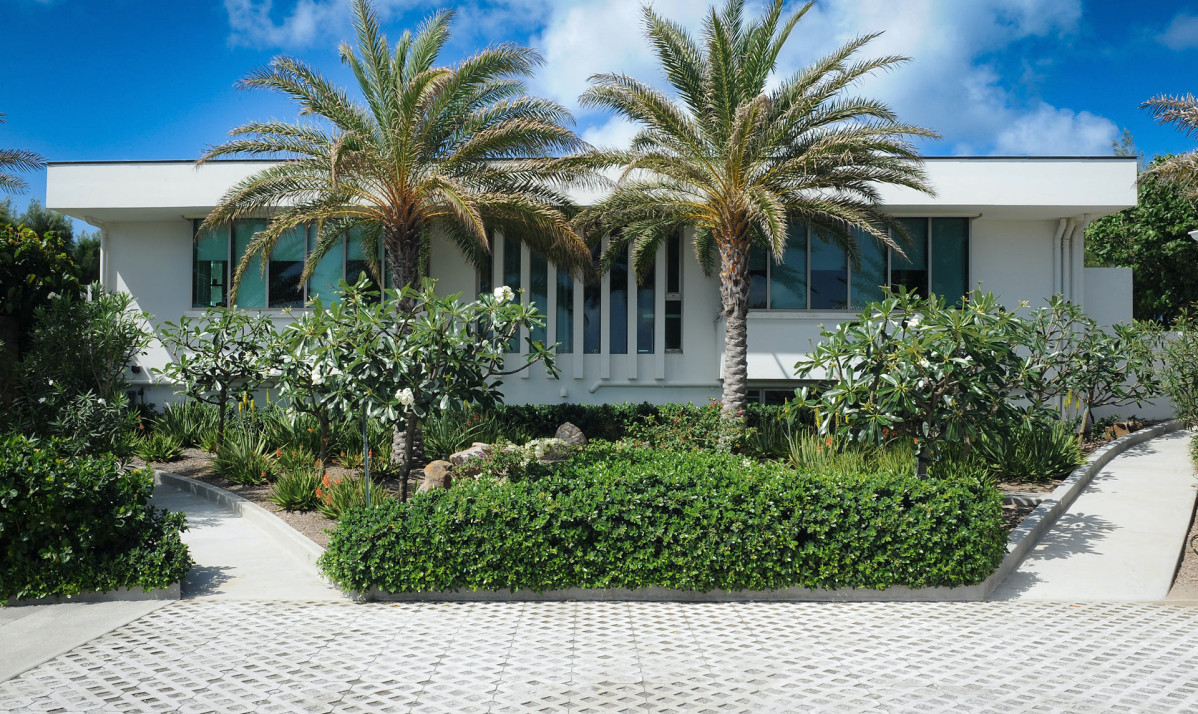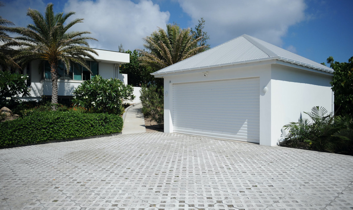 The exterior of the property features a sleek, modern design surrounded by lush tropical landscaping. Perched on the Pointe Milou ridge, it offers breathtaking ocean views from expansive terraces. The exterior includes two heated pools, one pool on main level and second pool slightly lower with spacious decks, perfect for relaxing or entertaining. Shaded lounge areas and an alfresco dining space create seamless indoor-outdoor living. The villa's gated entry and ample parking ensure privacy and security, making it an ideal retreat. Whether enjoying the sunrise or Caribbean sunsets, the villa's thoughtfully designed exterior promises a serene and exclusive island experience.