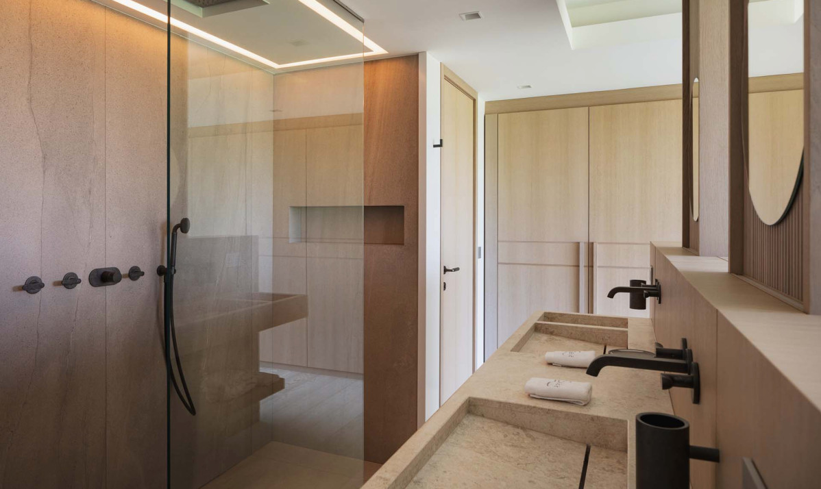 The five bedrooms are designed with comfort and elegance in mind, each offering a serene retreat for guests. Every room is spacious and tastefully decorated with contemporary furnishings, ensuring a sense of tranquility and style. Each bedroom comes with its own en-suite bathroom for the convenience. Large windows allow natural light to fill the rooms, while some bedrooms offer direct access to the terrace, providing stunning views of the surrounding landscape.