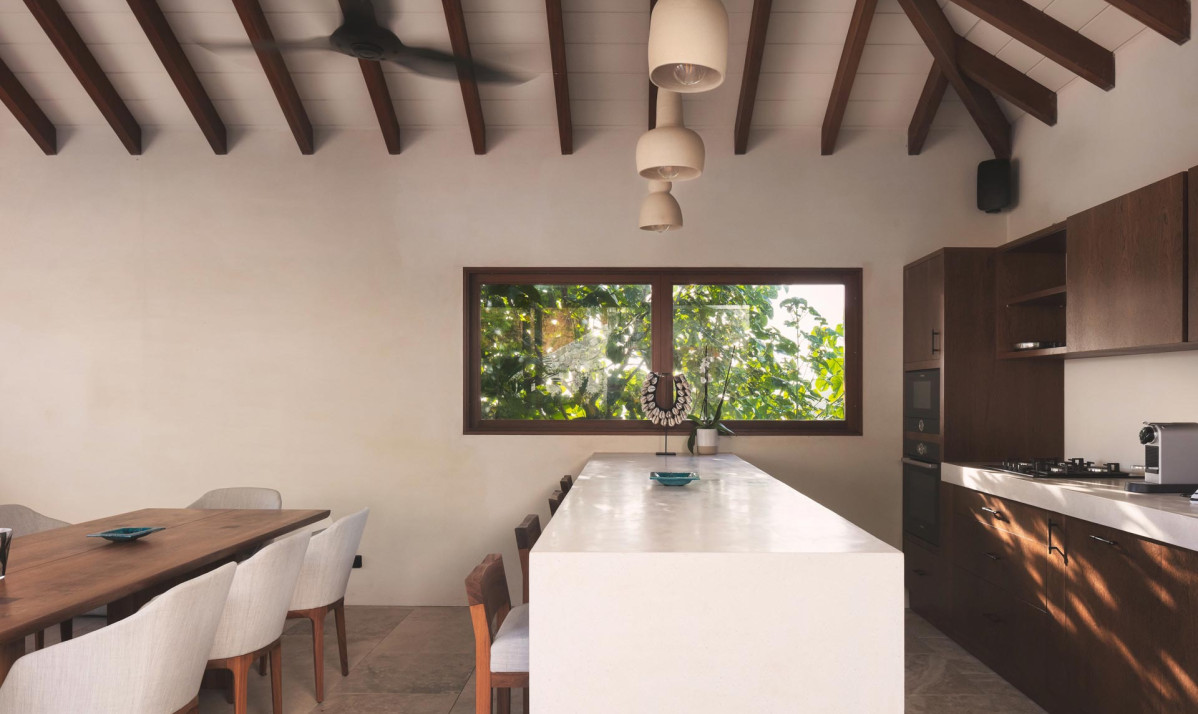 Step inside the villa and discover a beautifully designed interior that seamlessly combines modern elegance with island warmth. The open-plan living area features tasteful furnishings, vibrant textiles, and ample natural light, creating a welcoming space for relaxation and socializing. The fully equipped kitchen boasts sleek appliances and stylish countertops, perfect for preparing meals.