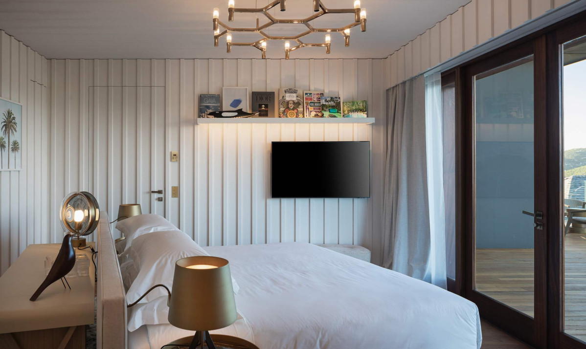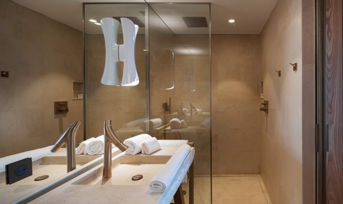This modern mansion, presents a luxurious accommodation arrangement with ten elegantly designed bedrooms. The primary structure houses seven suites, with four situated alongside the living area for easy access and three nestled on a lower floor for added privacy. Additionally, "The Cottage," an independent annex, comprises three charming bedrooms, complete with a stylish kitchen adorned in a checkerboard pattern, a cozy living space, and the allure of a second heated infinity pool, ensuring a blend of comfort and exclusivity for guests.
