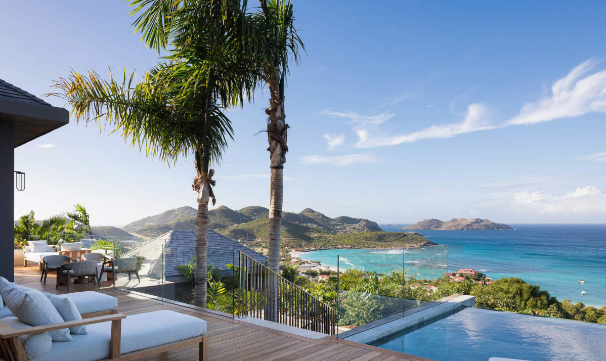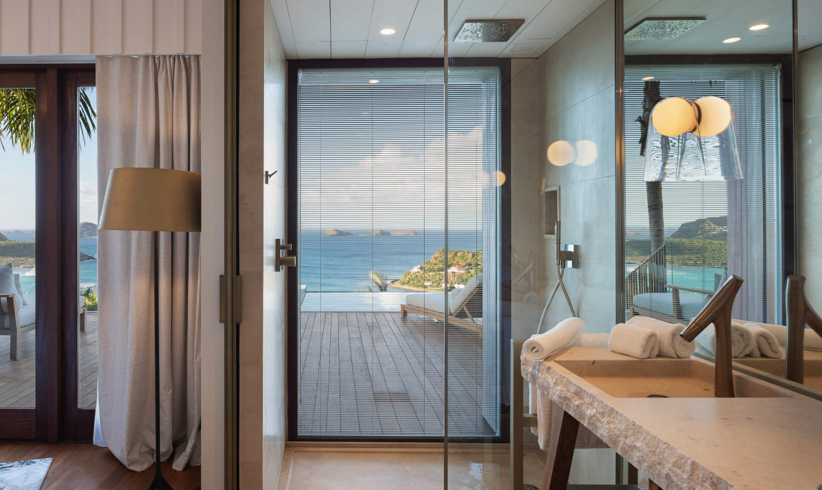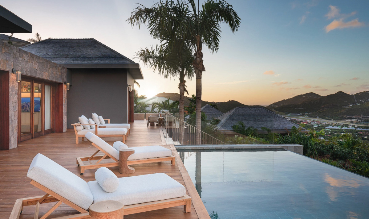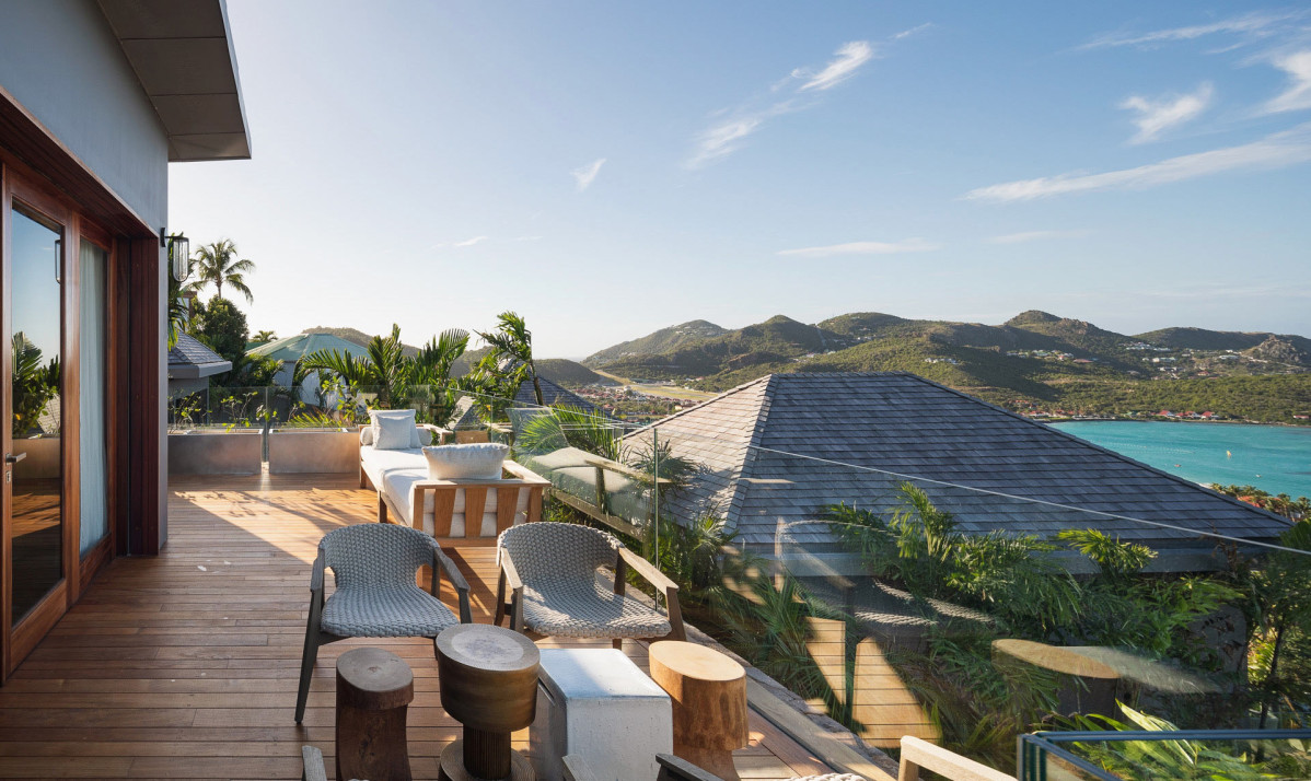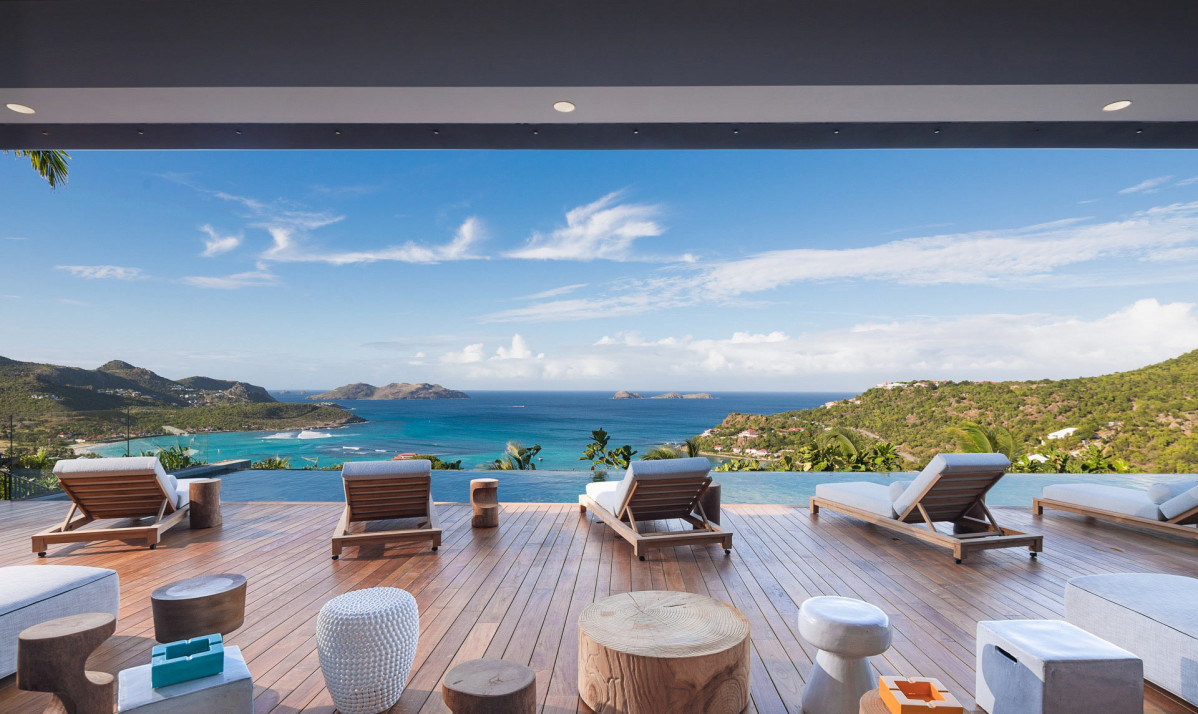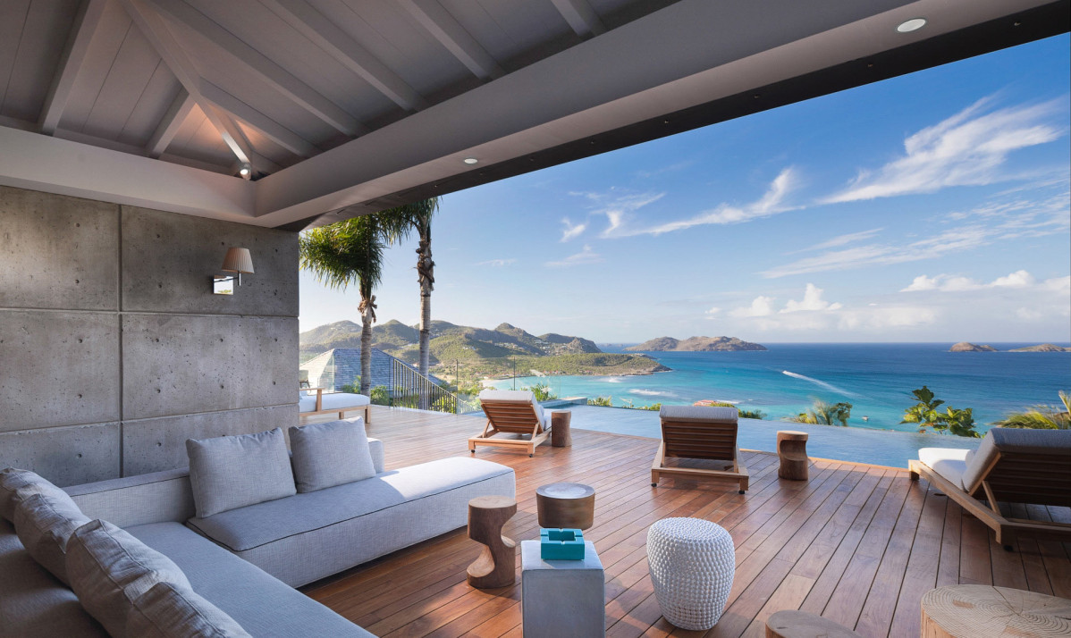 This Saint Barts villa, living up to its reputation, boasts an exceptionally magnificent exterior. Secluded from the bustling roads, a lengthy driveway leads to a spacious parking area, setting the stage for privacy and exclusivity. The first glimpse of the villa reveals an expansive terrace, dominated by a stunning 20-meter-long heated swimming pool and an adjoining mosaic-tiled Jacuzzi, embodying luxury and relaxation with a view. Further enhancing this outdoor haven is an elegant bar area, a sophisticated wine cellar, and a large dining table under the shelter of the terrace, capable of hosting 16 guests, all meticulously designed for an unparalleled outdoor living experience.