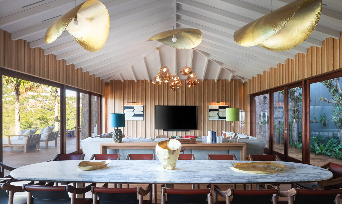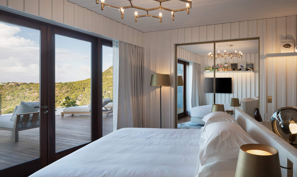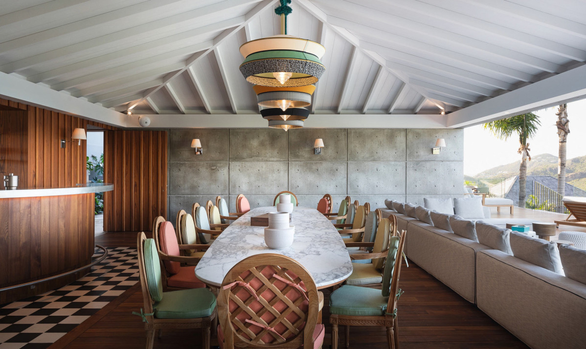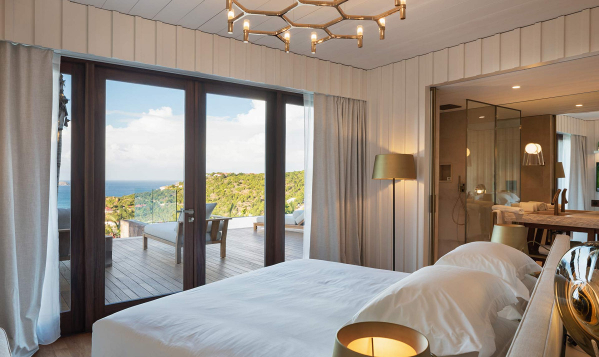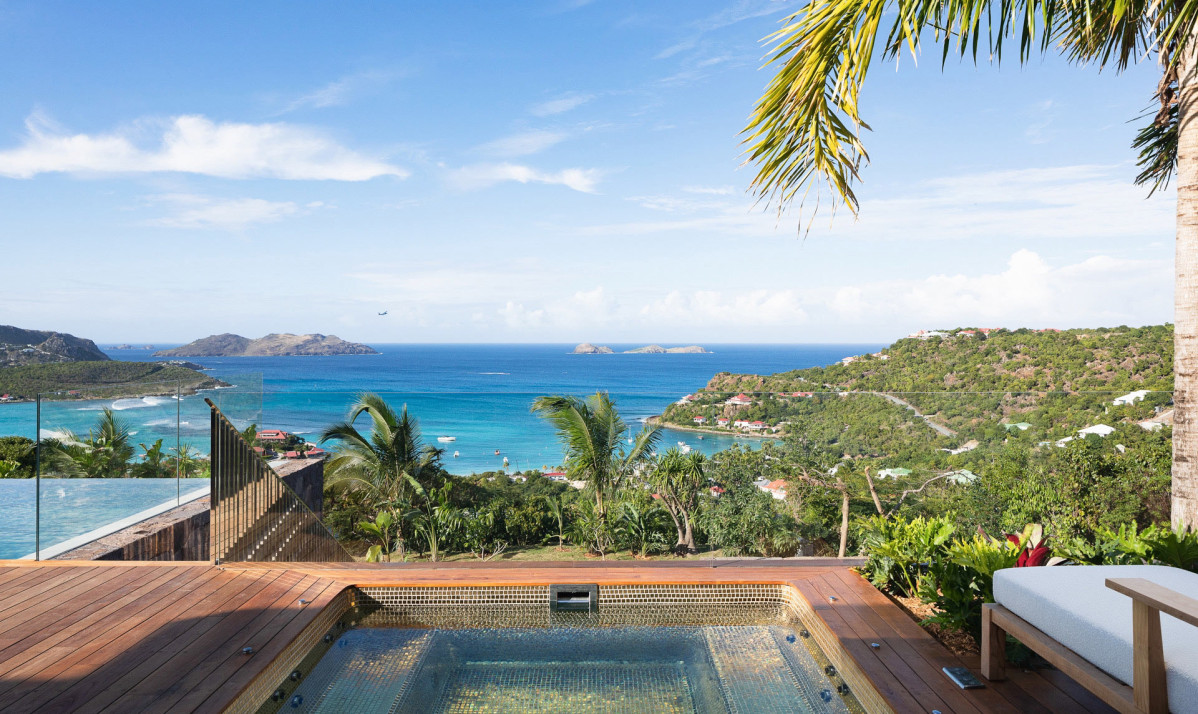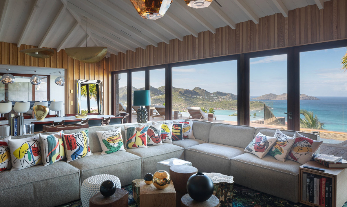 This Saint Barts villa, living up to its reputation, boasts an exceptionally magnificent exterior. Secluded from the bustling roads, a lengthy driveway leads to a spacious parking area, setting the stage for privacy and exclusivity. The first glimpse of the villa reveals an expansive terrace, dominated by a stunning 20-meter-long heated swimming pool and an adjoining mosaic-tiled Jacuzzi, embodying luxury and relaxation with a view. Further enhancing this outdoor haven is an elegant bar area, a sophisticated wine cellar, and a large dining table under the shelter of the terrace, capable of hosting 16 guests, all meticulously designed for an unparalleled outdoor living experience.